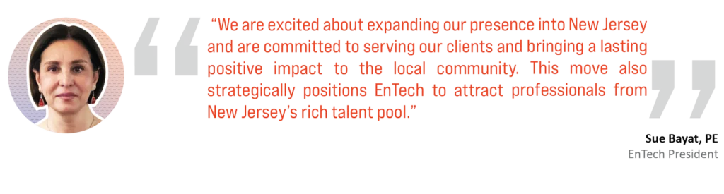 “We are excited about expanding our presence into New Jersey and are committed to serving our clients and bringing a lasting positive impact to the local community,” said EnTech President Sue Bayat. “This move also strategically positions EnTech to attract professionals from New Jersey’s rich talent pool.”