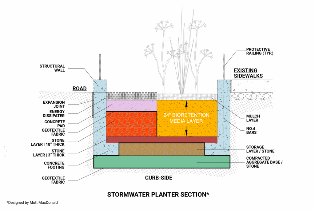 EnTech was the prime REI consultant for this project, which constructed 10 right-of-way bioswales along Park Avenue in Weehawken and West New York. These installations collect and manage stormwater and mitigate sewer overflows during periods of heavy rain