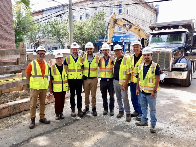 From left to right: Carlos Ortiz (Director of Safety, NYCDDC), Alla Ayzeshtat (Assistant Commissioner, NYCDDC), Jamie Torres-Springer (Commissioner, NYCDDC), Keivan Ghobadi, Clement Pikner, Joe Monte (Superintendent, Hylcyon Construction Co.), Steve Lala (Safety Manager, Hylcyon Construction Co.), and Ibraheem Al-Jowhar.